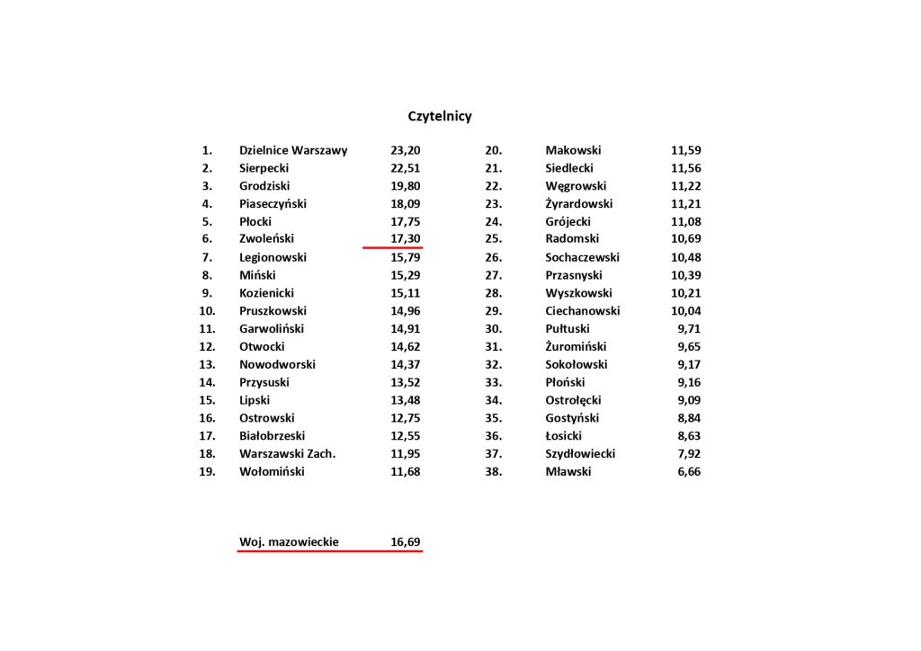 2. miejsce w kategorii czytelnicy – 22,51 czytelników na 100 mieszkańców