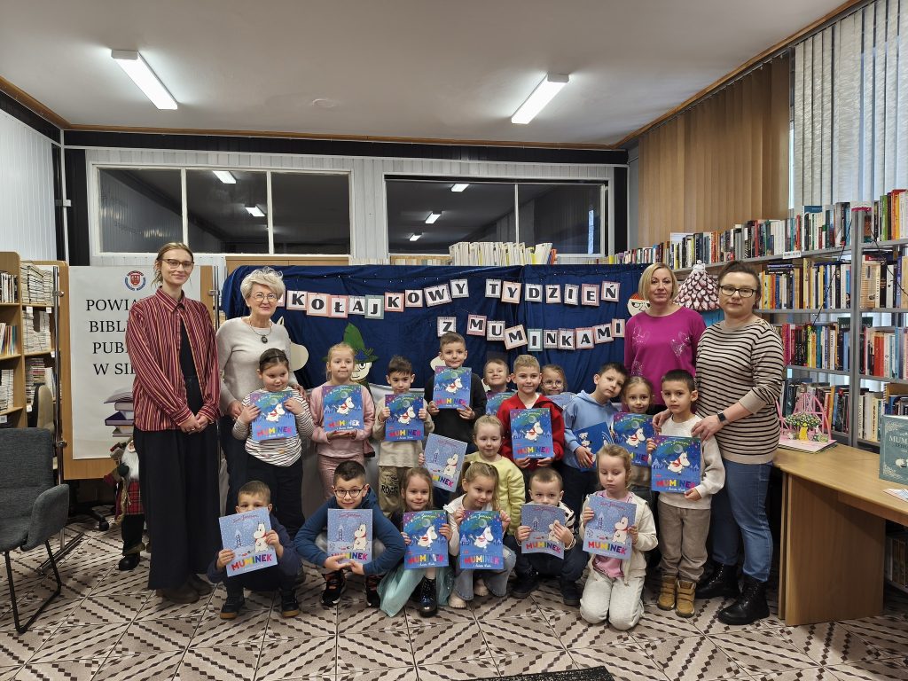Mikołajowy Tydzień z Muminkami w Powiatowej Bibliotece Publicznej w Sierpcu upłynął w ciepłej, radosnej i zimowej atmosferze. W wydarzeniu wzięły udział przedszkolaki z Miejskiego Przedszkola Nr 3 w Sierpcu, Happy Academy Dwujęzycznego Przedszkola Niepublicznego oraz Miejskiego Przedszkola Nr 2 w Sierpcu. Dzieci spotykały się z bohaterami Doliny Muminków, słuchały zimowych historii i wspólnie rozmawiały o przyjaźni, radości oraz byciu razem.