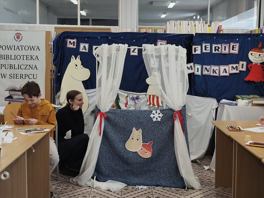 Podczas zajęć uczestnicy poznawali bohaterów książek, tworzyli własne kukiełki oraz autorskie historie, które prezentowali w teatrzyku.